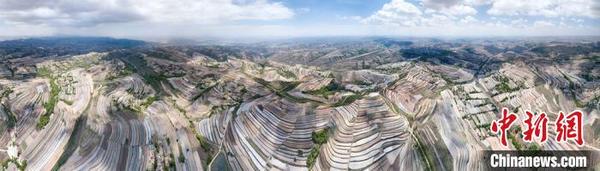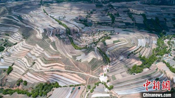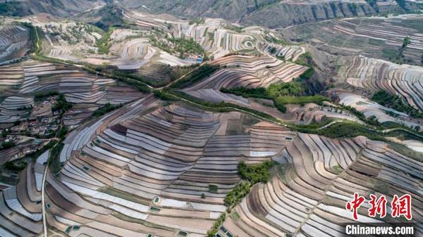 5月14日,甘肅省定西市安定區(qū)梯田廣袤,如同“五線譜”纏繞在黃土高原。定西市位于黃土高原丘陵溝壑地區(qū),是一個生態(tài)環(huán)境十分脆弱的地方。多年來,定西人堅持在生態(tài)文明和梯田建設(shè)上下功夫,總結(jié)并開發(fā)多種治理模式,在生態(tài)得以改善的同時,還產(chǎn)生經(jīng)濟(jì)效益。