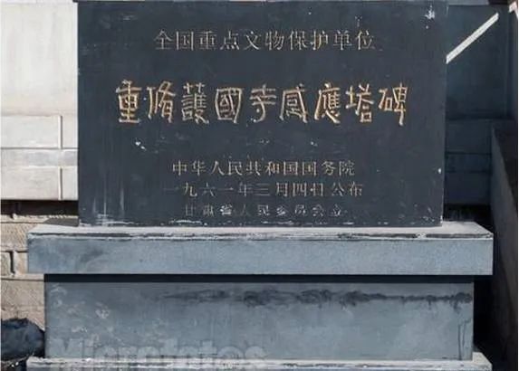 西夏碑,本名《涼州重修護(hù)國(guó)寺感通塔碑銘》,碑高26米,寬1米,厚03米。碑首呈半圓形,兩面正中用漢文和西夏文篆額,邊陰刻對(duì)稱(chēng)的伎樂(lè)舞女,翩翩起舞,動(dòng)作優(yōu)美,造型準(zhǔn)確;舞女胸和手腕上有飾物,赤露上身、雙腳,下著長(zhǎng)裙,面形肌肉豐滿,吸收了敦煌飛天的藝術(shù)特點(diǎn)。碑身的兩邊呈殺角,邊上刻忍冬紋。碑一面為西夏文,共28行,滿行65字。西夏文是一種被人們遺忘了的語(yǔ)言文字,無(wú)法辨認(rèn),當(dāng)時(shí)被稱(chēng)為“天書(shū)”。但碑的陽(yáng)面為漢文,共26行,滿行76字。張澍先生見(jiàn)碑陽(yáng)文末尾有“天祐民安五年歲次甲戌十五日戊建”落款,“天祐民安”為西夏年號(hào),遂判定此碑為西夏碑文,因此,人們以后稱(chēng)之為西夏碑。1961年就被國(guó)務(wù)院公布列為全國(guó)第一批重點(diǎn)文物保護(hù)單位。