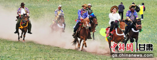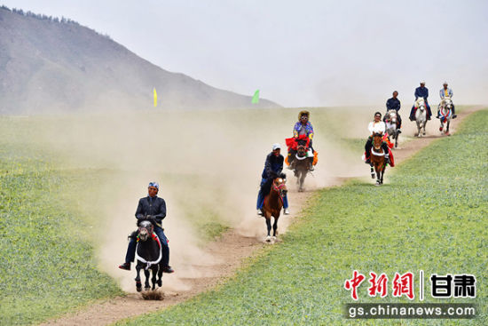 甘肅肅南裕固族傳統(tǒng)賽馬展草原民族風(fēng)情