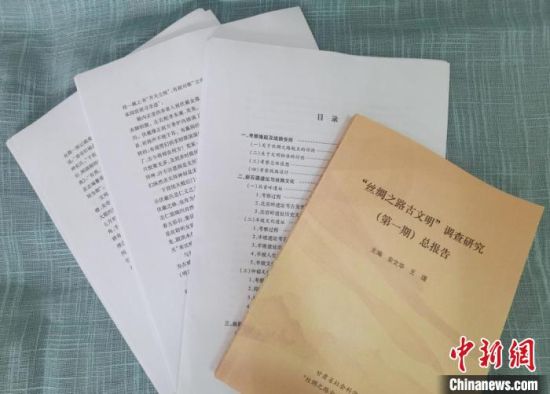 7月下旬,甘肅省社會(huì)科學(xué)院工作人員展示《絲綢之路古文明》第一階段考察報(bào)告打印版?!¢Z姣 攝