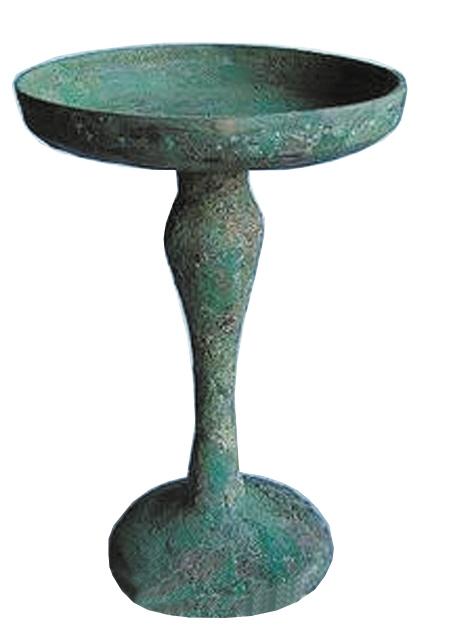 中國(guó)古代的照明工具,除掉最原始的火把,最早的是油燈而不是蠟燭,有關(guān)蠟燭的記載是漢代才有的。既然要用油燈,古人用什么器皿來盛放燈油和燈芯呢?人們找來找去,一種名叫“豆”的器皿脫穎而出。“豆”本為上古時(shí)代的一種盛食器,其上為圓盞盤,中間為或長(zhǎng)或短的直柄,最下為喇叭或圓足形底座。簡(jiǎn)單地說,“豆”的形狀就像高腳盤,一般用陶制,也有青銅或木制的,青銅制的用作祭祀禮器。“豆”的造型,完全符合人們對(duì)燈具的基本需求——既有能裝油和燈芯的淺淺的容器,又有方便移動(dòng)的把手。于是,人們就在“豆”的基礎(chǔ)上稍加修改,用陶土燒制出了最初的高腳燈具。