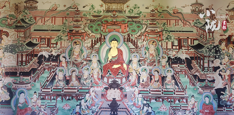 近日,一副長(zhǎng)15米、高6米的大型臨摹復(fù)制敦煌壁畫《無量壽經(jīng)變》在武威鳩摩羅什寺完美竣工,將于近期對(duì)外開放。