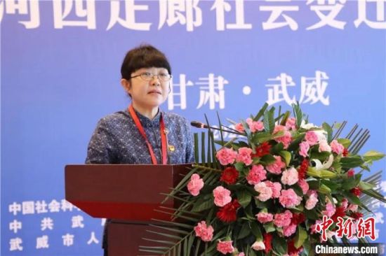11日,“明清時(shí)期河西走廊社會(huì)變遷”學(xué)術(shù)研討會(huì)舉辦。圖為中國社科院古代史研究所黨委書記趙笑潔講話。 武威市新聞傳媒集團(tuán)供圖