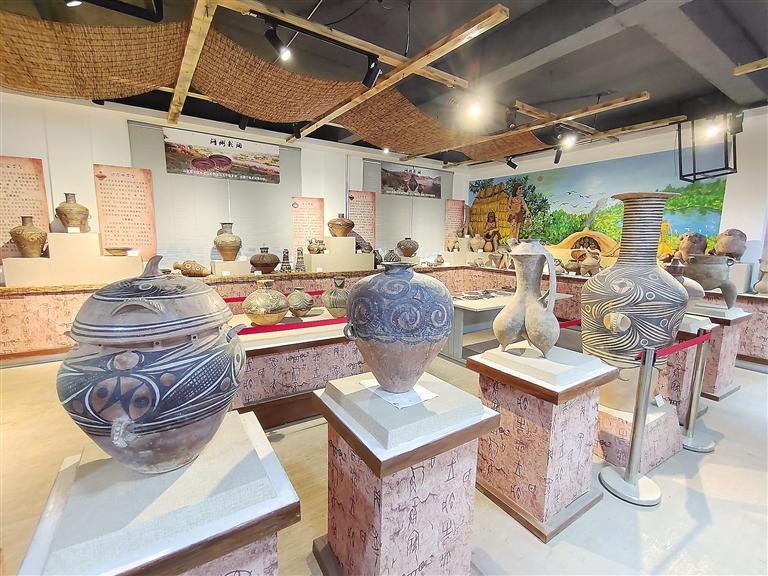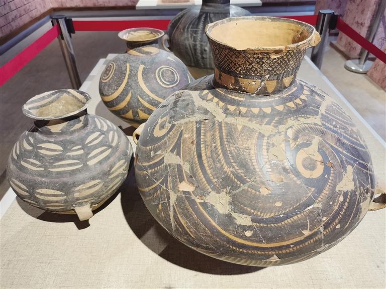 走進(jìn)彩陶藝術(shù)館,目之所及都是造型獨(dú)特的仿彩陶罐,在墻上可以看到陶片裝飾的藝術(shù)品,細(xì)節(jié)透著“彩陶之鄉(xiāng)”的文化底蘊(yùn)。