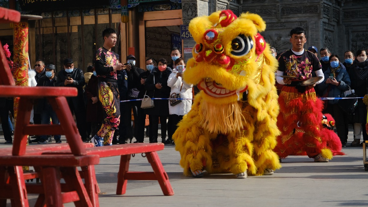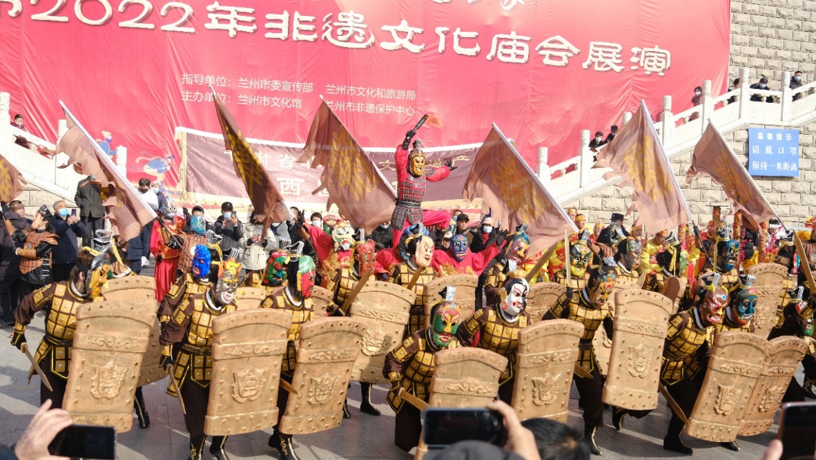 2月2日, 大年初二,“冬奧過大年·文化進萬家”蘭州市2022年非遺文化畝會展演活動在甘肅省蘭州市城關(guān)區(qū)金城關(guān)舉行。
