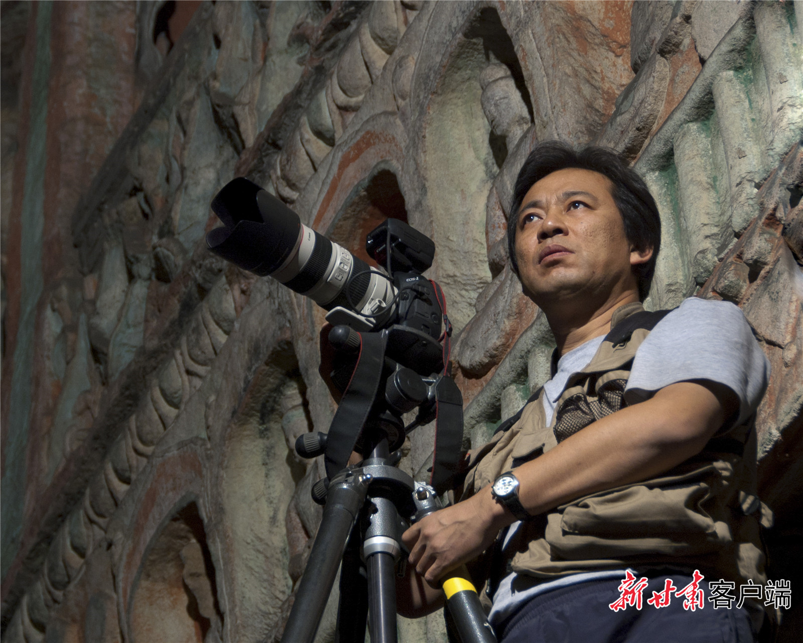 吳健工作照-云岡石窟工作現(xiàn)場。