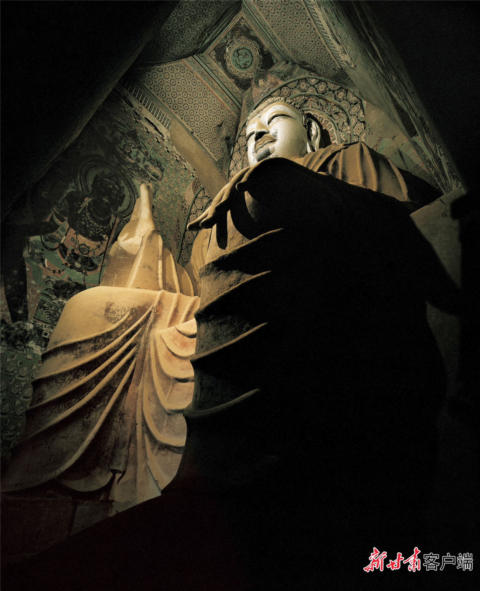 頭腦接受到太多沖擊后,吳健跳出敦煌再看敦煌藝術(shù)。他想,雕塑原來應(yīng)該這么拍!那些雕塑的原型是活生生的人啊,應(yīng)該跟人像拍攝結(jié)合起來。“攝影不同于照相,而是用光去繪畫。”