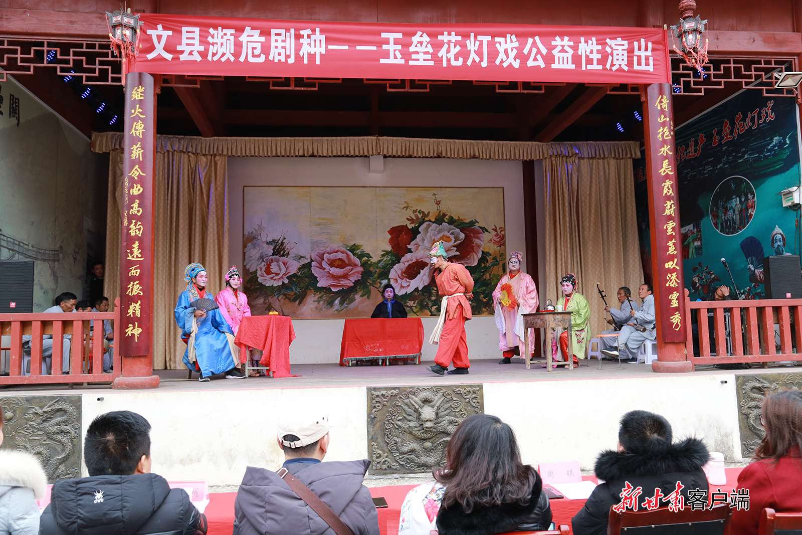 2月15日,甘肅省文化藝術(shù)研究院《中國戲曲劇種全集》課題組在文縣玉壘鄉(xiāng)玉壘坪村開展花燈戲田野調(diào)查展演。文縣玉壘花燈戲是我省的傳統(tǒng)戲曲劇種之一,歷史悠久,特色鮮明,在玉壘鄉(xiāng)一帶群眾中廣泛流傳,是甘肅省級(jí)非物質(zhì)文化遺產(chǎn)。