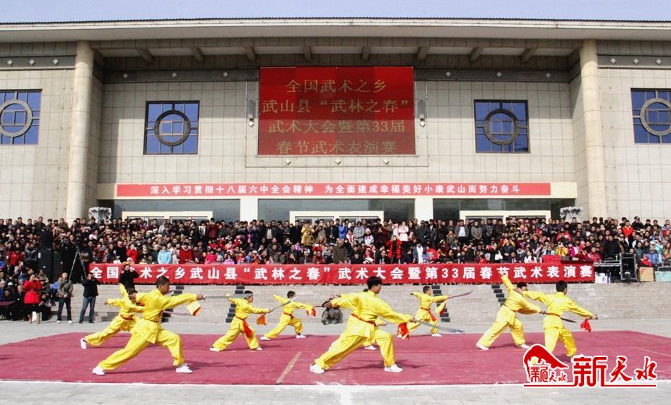 有武——武山是“全國武術(shù)之鄉(xiāng)”。全縣習(xí)武蔚然成風(fēng),有六合拳、八步轉(zhuǎn)等地方拳和國家套路、梅花槍、通備拳、硬氣功、太極拳等門類,常年習(xí)武人數(shù)達(dá)7萬多人,每年正月舉辦全縣武林之春武術(shù)表演大會。