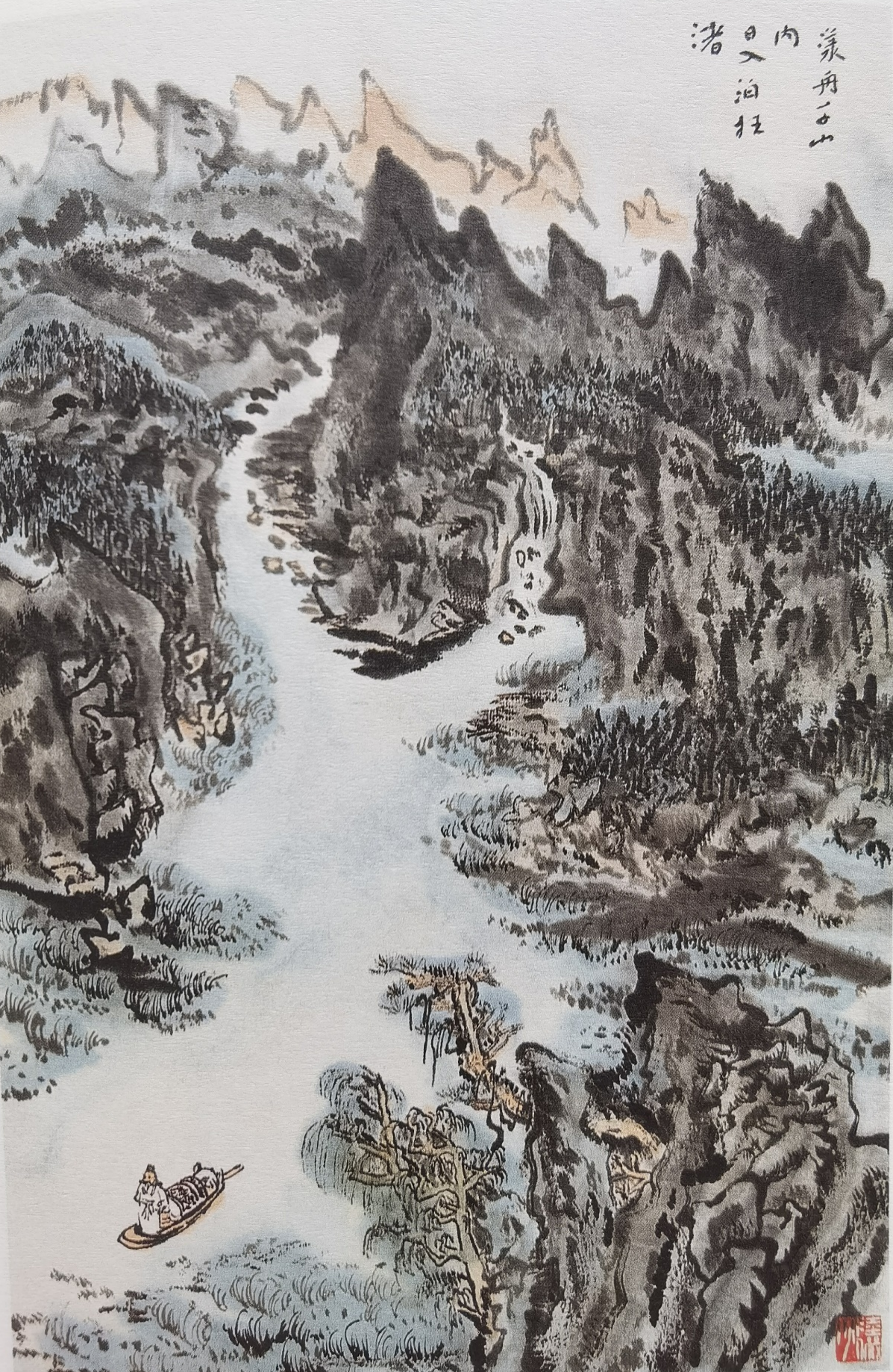 圖:陸儼少《杜甫詩意圖冊》之《漾舟千山內(nèi),日入泊枉渚》