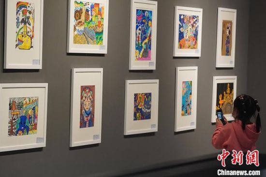 5月15日,甘肅蘭州,市民參觀少兒美術(shù)展覽。當(dāng)日,不少市民和游客來(lái)到甘肅省博物館參觀,樂(lè)享周末時(shí)光。九美旦增 攝