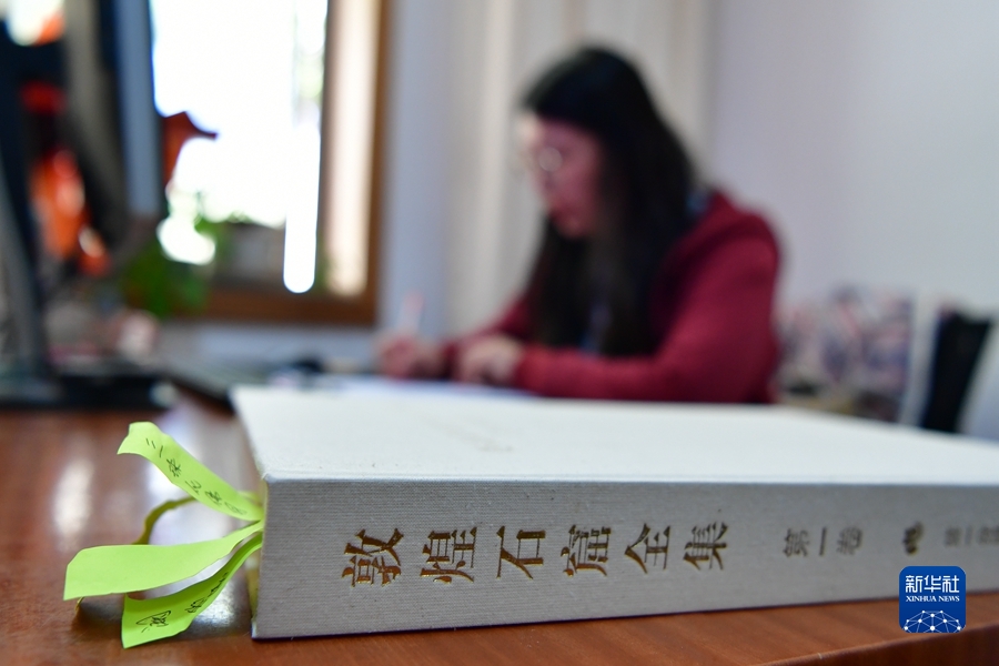 4月19日,王嬌在辦公室整理文字資料。新華社記者 陳斌 攝