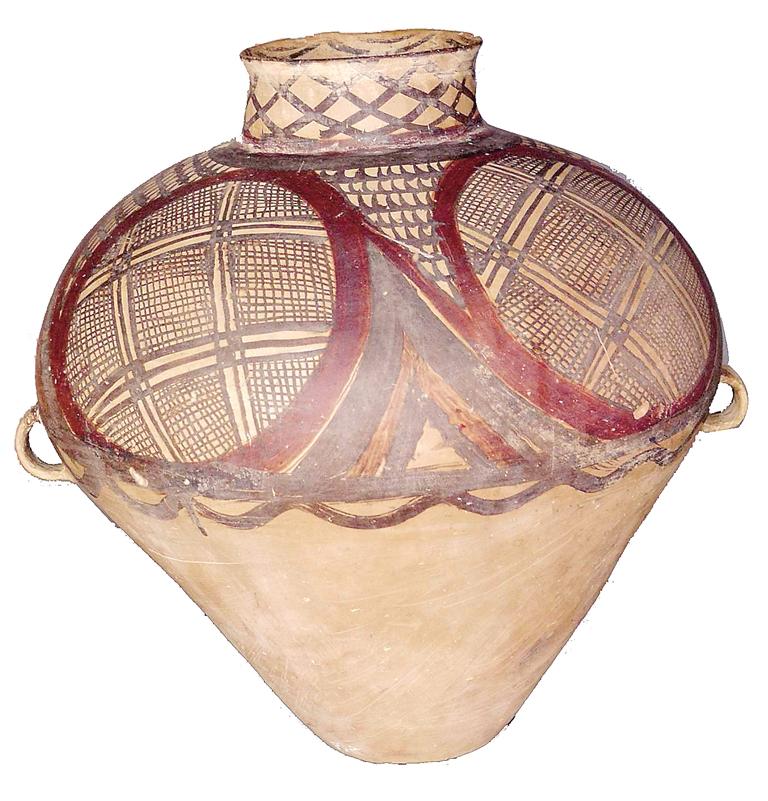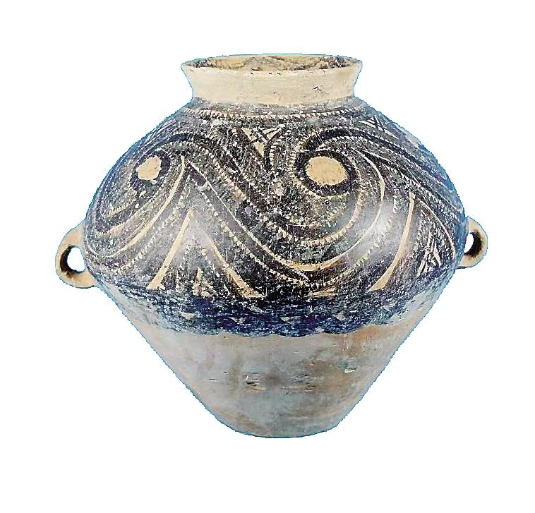 姓名:馬家窯文化半山類型漩渦紋雙耳彩陶罐 出生年代:距今約4650—4350年左右 住址:積石山縣博物館 體型:高34厘米,口徑15.7厘米,腹徑109.9厘米,底徑13厘米 自我描述: 我是國家二級(jí)文物。我們半山類型彩陶家族成員主要有大型貯藏器壺、甕、罐等。1988年積石山縣癿藏鄉(xiāng)吊地屲村一村民將我捐贈(zèng)給博物館。泥質(zhì)紅陶造就的我,撇口,束頸,溜肩,腹部飾對(duì)稱的雙耳,施黑彩,肩腹部有四方連續(xù)漩渦鋸齒紋,下飾一周水波紋。胎體光亮,紋飾細(xì)膩規(guī)整。