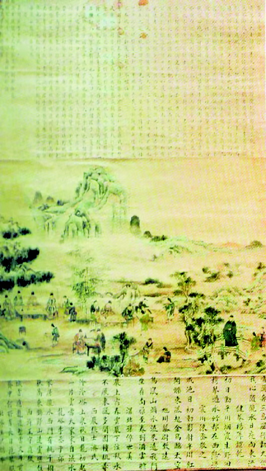 “隴溪九逸”每逢集會(huì),必懸此圖。他們繼承中國(guó)文人優(yōu)良的傳統(tǒng)美德,“居廟堂之高則憂其民,處江湖之遠(yuǎn)則憂其君”,看似醉情山水,實(shí)則壯心不已,制訂鄉(xiāng)約,設(shè)館授徒,為家鄉(xiāng)的文化教育事業(yè)發(fā)揮著余熱。從這個(gè)意義上說(shuō),明代秦安“隴溪九逸”正是古代知識(shí)分子憂國(guó)憂民的一個(gè)縮影,亦是那個(gè)時(shí)代的一抹春色。