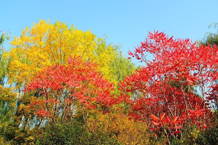 隨便鋪開畫紙,蘸取一點點秋色,藍(lán)天、紅墻、金葉……都是最美的色調(diào)。
