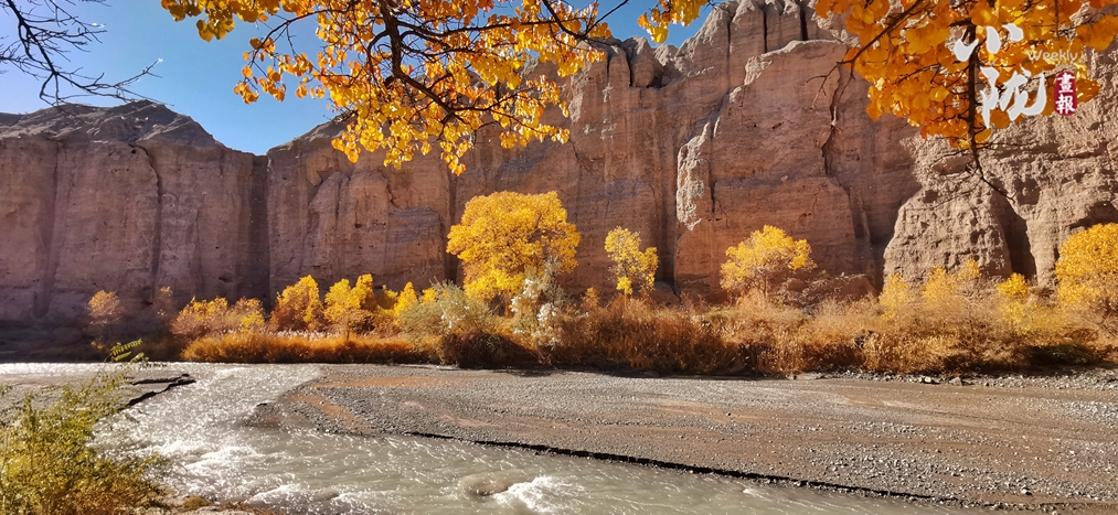 初冬時節(jié),這里的胡楊林五彩斑斕,金碧輝煌,黃燦燦的樹葉與藍天、白云相映成趣。在陽光的照耀下,金黃色的樹葉隨風搖曳,肆意而優(yōu)雅,為秋天帶來幾分浪漫。身入林中,涼爽的空氣中洋溢著淡淡清香,像溫暖的秋陽,沁人心脾。