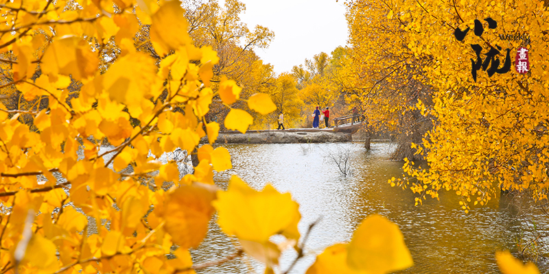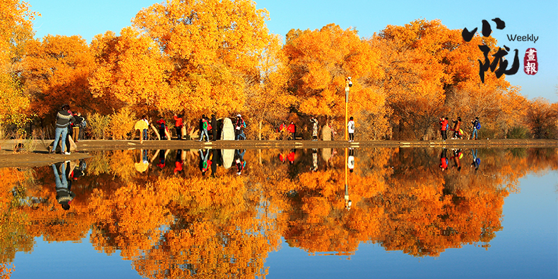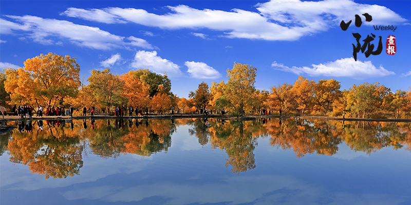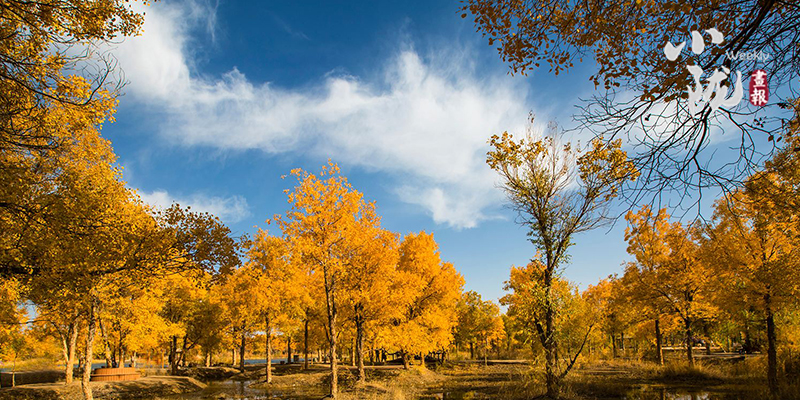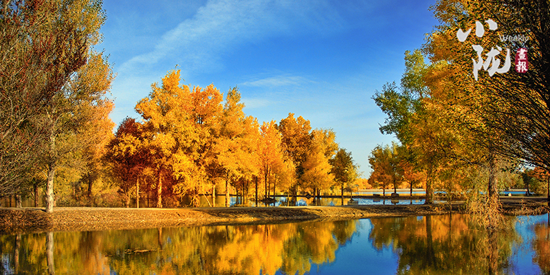 秋風(fēng)起時(shí),一樹金黃在湛藍(lán)的天空下連綿不絕,映著湖面,和流云飄逸的藍(lán)天一起,綻放成一幅壯麗的圖景。