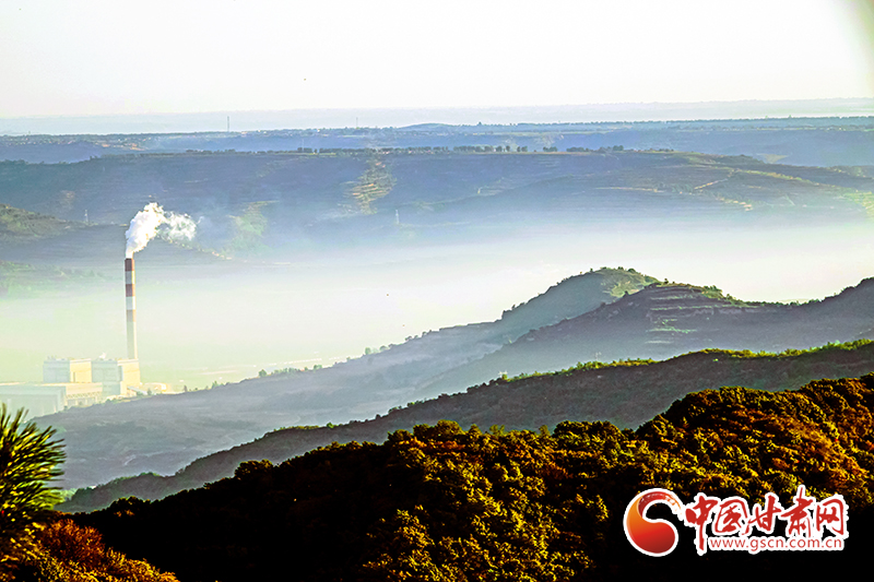初冬時(shí)節(jié),在夕陽的映照下,平?jīng)鍪刑泼鄙绞〖壣止珗@云霧繚繞,山巒在云霧中若隱若現(xiàn)、如夢如幻,呈現(xiàn)出仙境般美景。