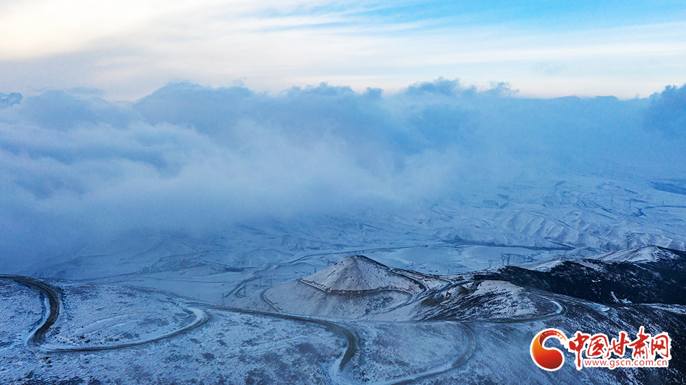 近日,一場降雪過后,武威市天??h烏鞘嶺出現(xiàn)云海景觀。從海拔3562米的毛毛山俯瞰,大地銀裝素裹,雪山巍峨,云海起伏,云霧沿著山脊緩緩流動(dòng),好似潔白的綢緞,美如仙境。