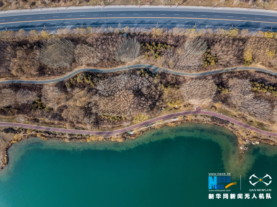 這是11月21日拍攝的甘肅省張掖市甘州區(qū)蘆水灣風(fēng)光(無人機(jī)拍攝)。新華網(wǎng)發(fā) (成學(xué)磊 攝)