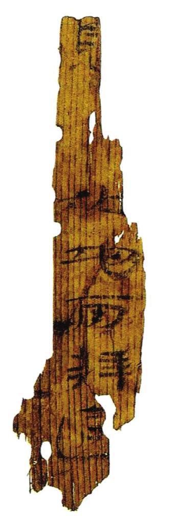 牘是比兩行還要寬,有的可寬至6厘米,長度多與普通簡相同,多為木制,用來寫信、契約或抄錄醫(yī)方、歷譜等,墓中發(fā)現(xiàn)的牘大多用來記錄隨葬的物品目錄。