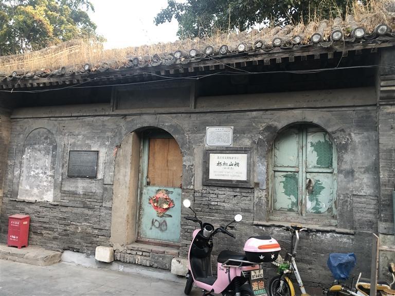 就是在這個胡同里,我看到一個歇山式屋頂?shù)姆课?,但已相當?shù)钠茢。蓓斏祥L滿了凄凄荒草,門窗皆已破爛不堪。但是門旁的墻壁上卻鑲嵌著一塊匾,近前一看,上面寫著“楊椒山祠”。喲,這就是楊椒山在北京的祠。