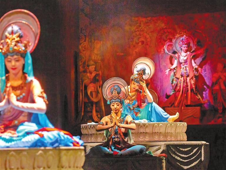 敦煌,這座取之不盡用之不竭的藝術(shù)富礦,這一“頂流”的文化IP,已成為我省旅游演藝創(chuàng)作的發(fā)端。廣大文藝工作者深入挖掘敦煌文化,不斷豐富敦煌旅游演藝市場,以藝術(shù)的形式展示“一帶一路”開放、包容、合作、共贏的精神,在創(chuàng)新傳承中展現(xiàn)文化自信。