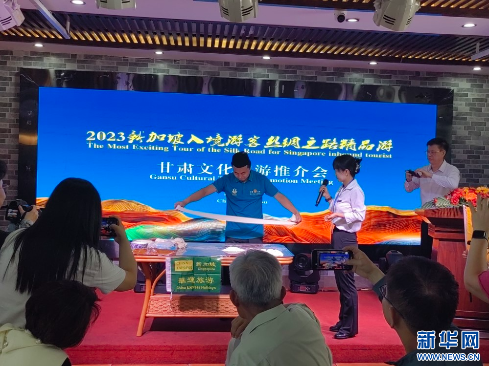 推介會上,甘肅文化和旅游推介大使向新加坡游客詳細介紹了甘肅多元且極富特色的文化旅游資源;蘭州拉面師傅為大家現(xiàn)場表演了非遺美食牛肉面的拉面絕技;新加坡南方藝術(shù)研究會合唱團還進行了合唱表演。