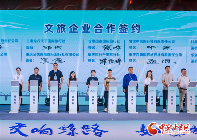 推介會上,蘭州、隴南兩地文旅部門分別作了當地文旅資源主題推介。甘肅蘭鐵國際旅行社與重慶和平國際旅行社;甘肅蘭神國際旅行社與重慶西美國際旅行社;嘉峪關君和國際旅行社與重慶渝之旅國際旅行社等兩地的20家文旅企業(yè)(旅行社)代表分別簽訂了《甘渝客源互送合作協(xié)議》。