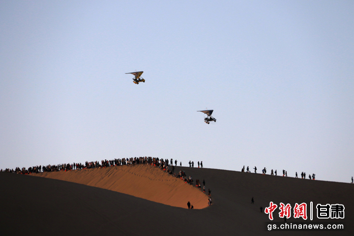 今年以來,甘肅省敦煌市旅游市場持續(xù)火熱。當(dāng)?shù)刂包c鳴沙山月牙泉在今年中秋國慶假期期間,累計接待游客首次突破300萬人次,比2019年同期增長35.5%,創(chuàng)歷史新高。(張曉亮 習(xí)剛)