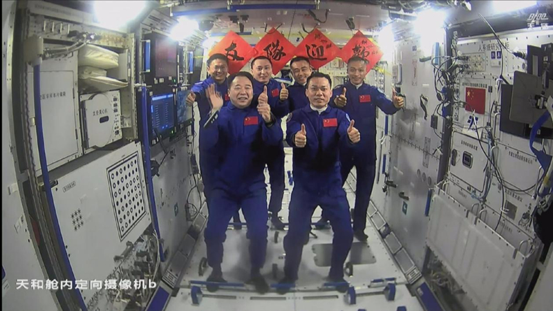 ?。?)三期并列:神舟17號與神舟16號兩個乘組會合,實(shí)現(xiàn)了我國三批航天員在空間站的首次大團(tuán)圓。