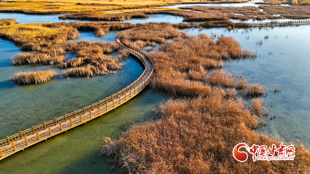 初冬時節(jié),張掖黑河濕地國家級自然保護(hù)區(qū)的蘆葦、蒲草等植物在秋風(fēng)、冬霜的吹拂下都變成了金黃色,密密的蘆花舞動著裊娜的身姿,倩影婆娑,蘆葦叢里鳥鳴啾啾,整個濕地成為了一片金色的童話世界,讓人產(chǎn)生無限遐思。