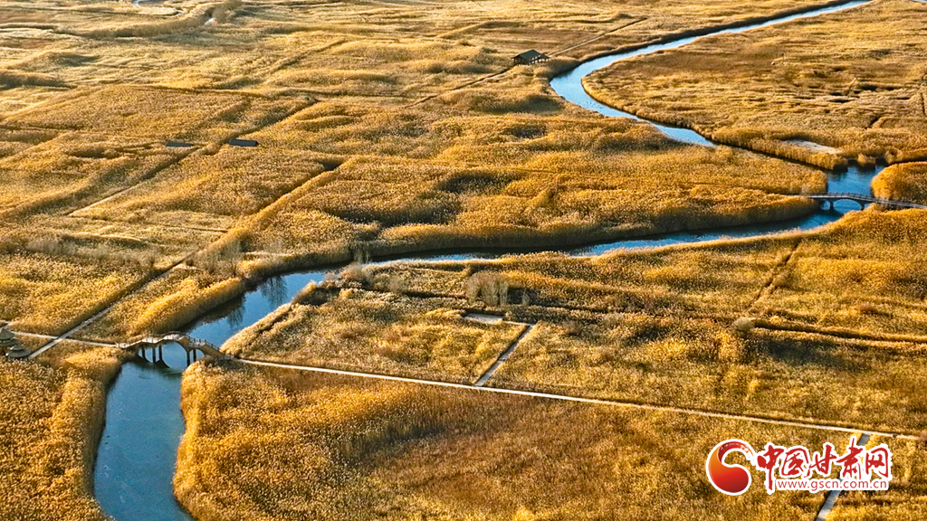 11月25日,在夕陽映照下的甘肅張掖黑河濕地國家級自然保護(hù)區(qū),金色繁茂的蘆葦長滿水面,碧水環(huán)繞其中,清風(fēng)吹過,綠波蕩漾,成為市民和游客心曠神怡的好去處。