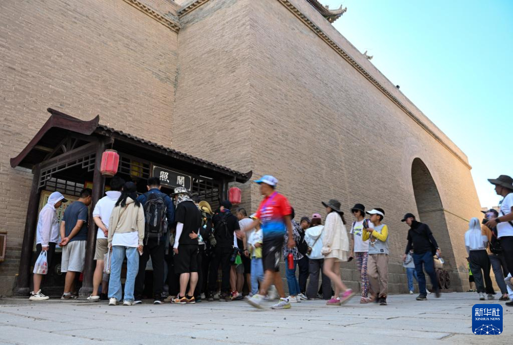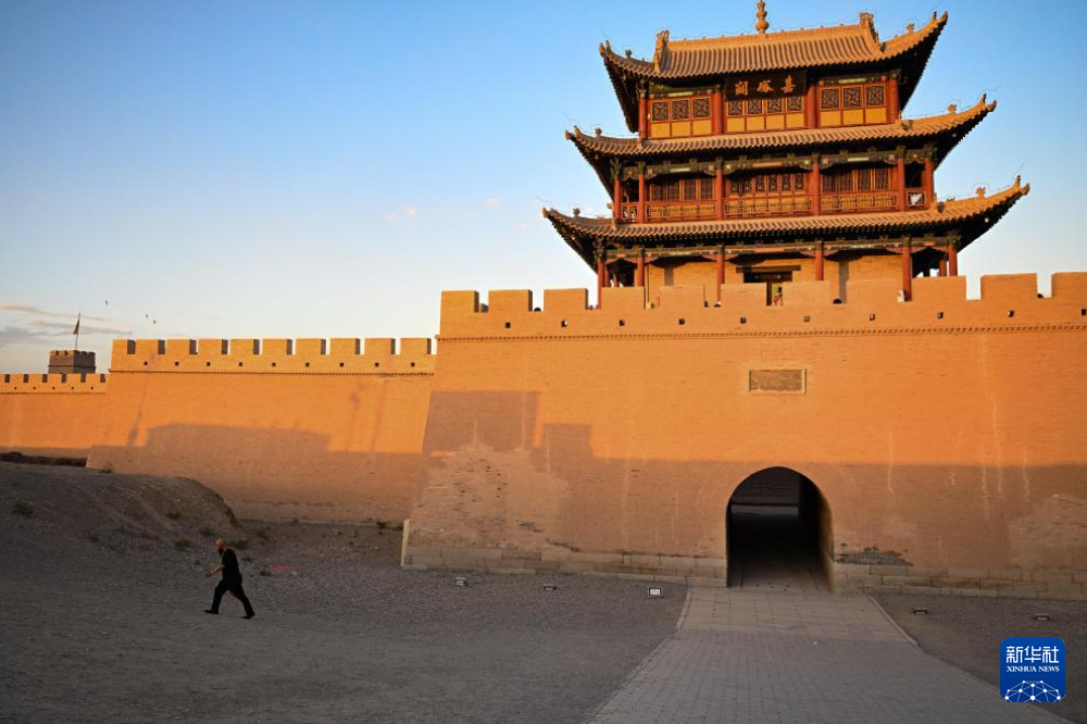 7月14日,結束一天的工作,李森走出甘肅嘉峪關關城景區(qū)。新華社記者 陳鐘昊 攝