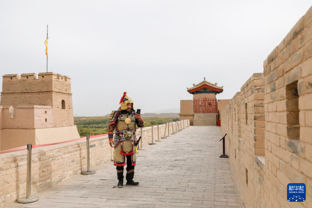 9月26日,李森在拍攝宣傳甘肅嘉峪關關城景區(qū)的短視頻,他在短視頻平臺已有40多萬粉絲。新華社記者 方欣 攝