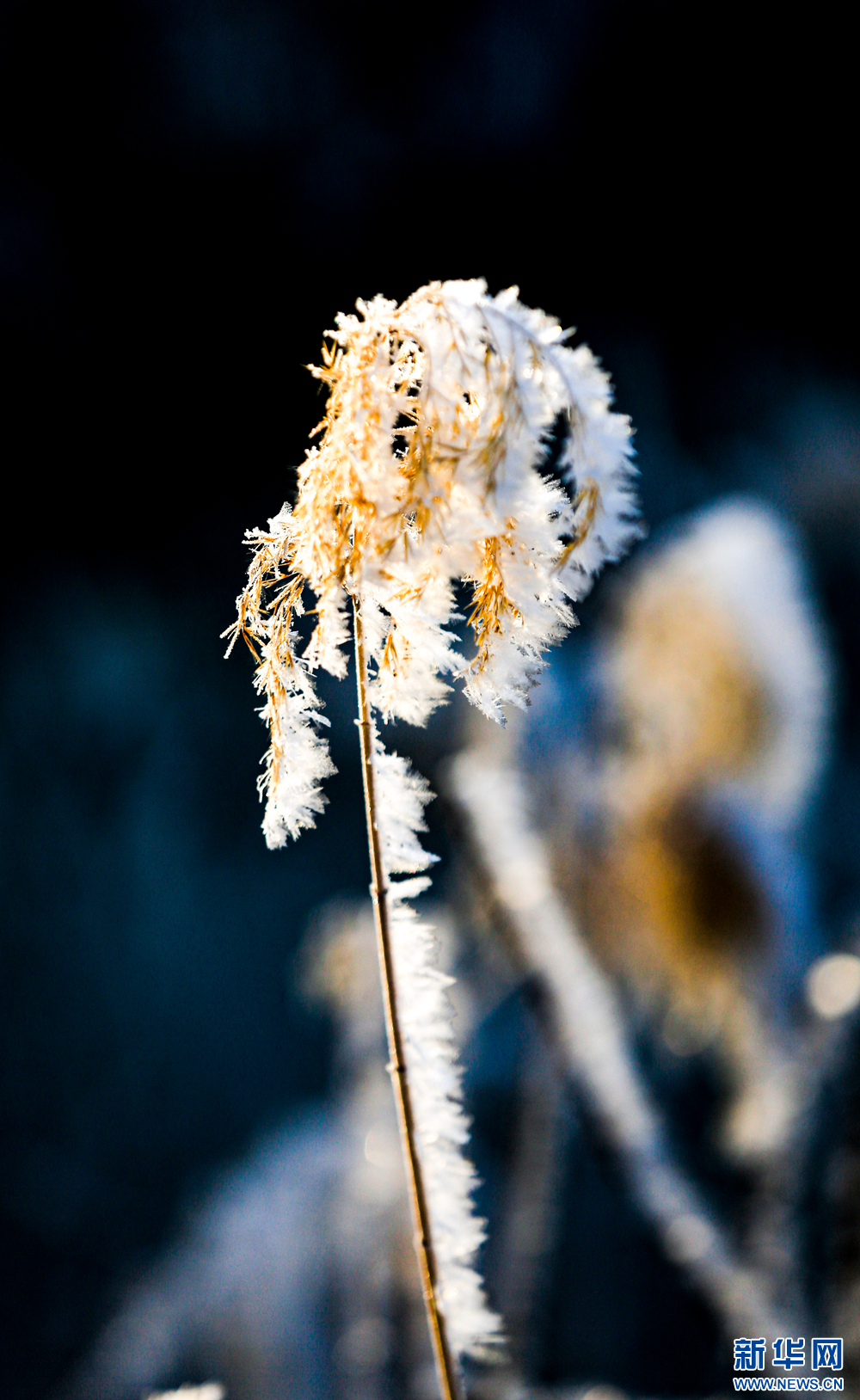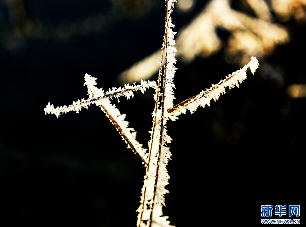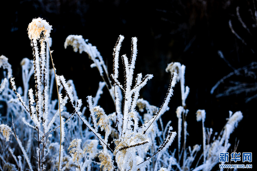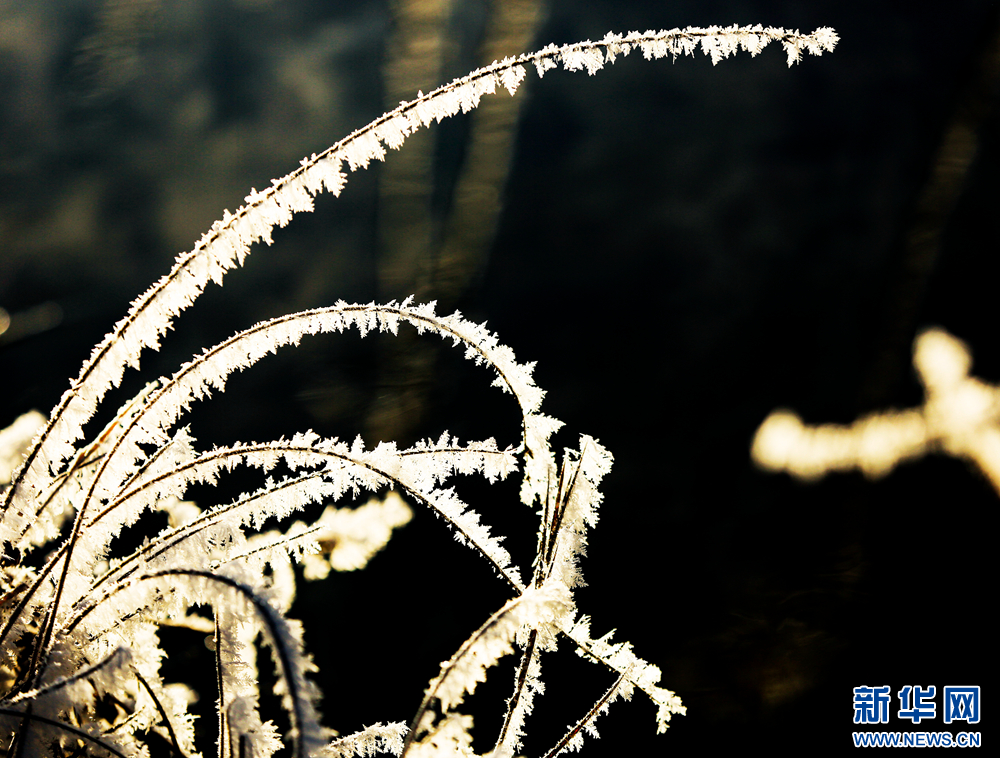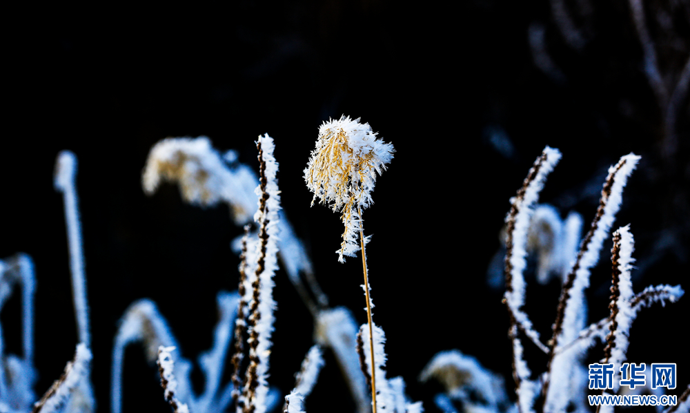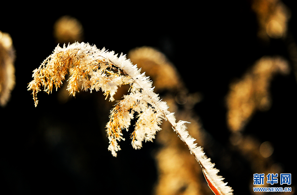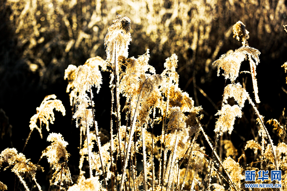 冬日里,甘肅省張掖國家濕地公園蘆葦叢中的蘆花掛滿冰花,晶瑩剔透,美不勝收。新華網發(fā)(陳禮 攝)