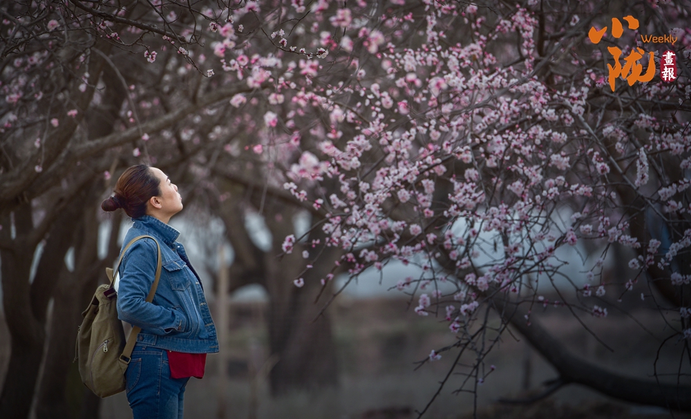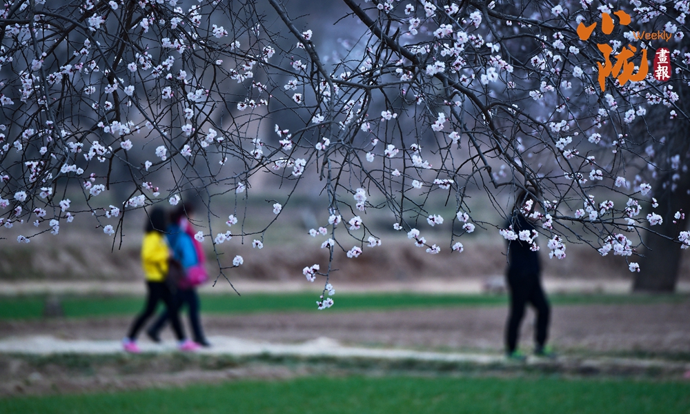 遠(yuǎn)遠(yuǎn)望去,到處是枝節(jié)橫生的杏樹,處處是農(nóng)家小舍,隱藏其中,人在花中,花在眼前。前來賞花的游客蜂擁而至,在杏園里駐足拍照,流連忘返。