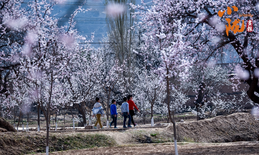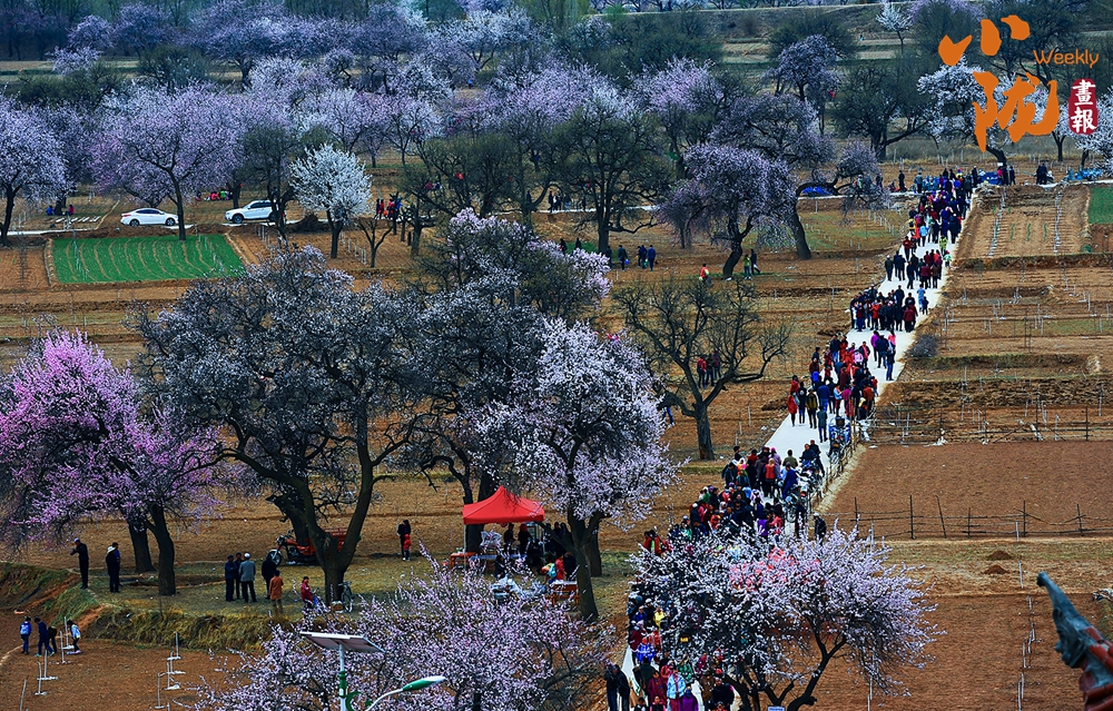 在唐汪川,無論是在田間地埂,還是房前屋后,到處都是含苞待放的杏樹。行走在杏花林中,踏著小道,迎著花香,別有一番情趣。