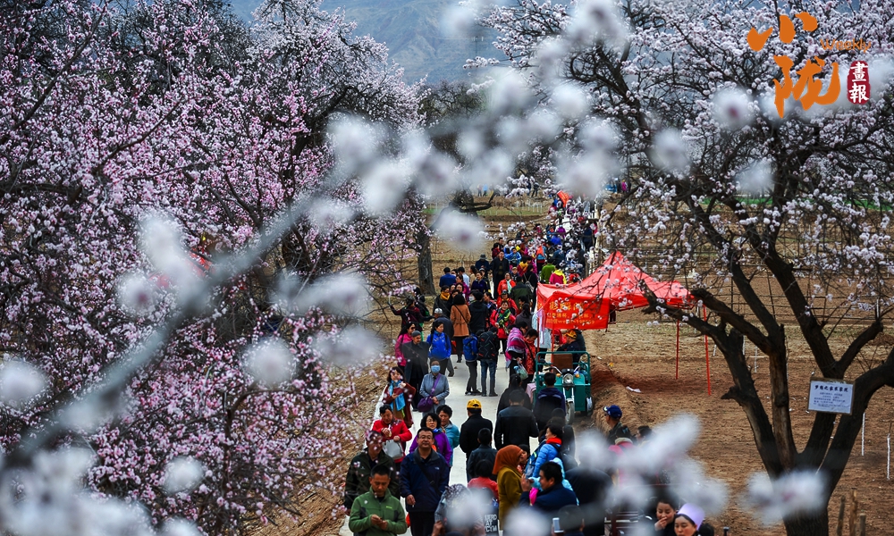 伴著杏花的芬芳,行走在杏花林間,一家老小、親朋好友三五成群地在杏花樹下留念拍照,來感受“醉美”唐汪川。