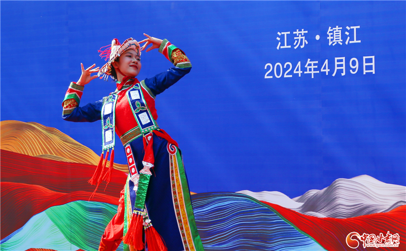 活動中,具有甘肅民族特色的舞蹈串燒和特色民歌快閃吸引了大批當?shù)厝罕姾陀慰婉v足觀賞。甘肅省文旅廳、鎮(zhèn)江市文旅局分別向即將出發(fā)前往甘肅的“詩與遠方”主題研學旅行團隊、“星耀隴原”主題研學旅行團隊授旗。