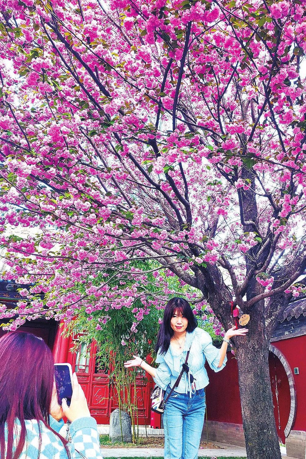 ▲天水伏羲廟盛開(kāi)的櫻花醉游人。