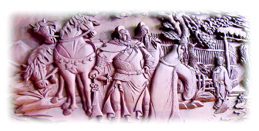 因著榜沙河的滋潤,“民武”木雕擺件大多采用本地質(zhì)地細密堅韌、不易變形的梨木,所刻作品溫潤而不浮躁,沉穩(wěn)而不輕浮。最具特色的是,在題材選取上極富傳統(tǒng)文人氣息,尤其是施彩擺件,具有較高的藝術(shù)水準(zhǔn)。這些千姿百態(tài)的圖案,將生活場景和神話故事有機融合在一起,高大悠遠、古拙秀雅,達到了“變形不失真,夸張亦傳神”的藝術(shù)境界。