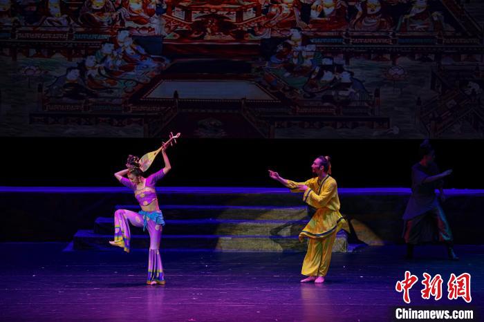 2023年4月17日晚,中國(guó)經(jīng)典舞劇《絲路花雨》在澳門(mén)百老匯劇場(chǎng)演出。(資料圖)甘肅演藝集團(tuán)供圖