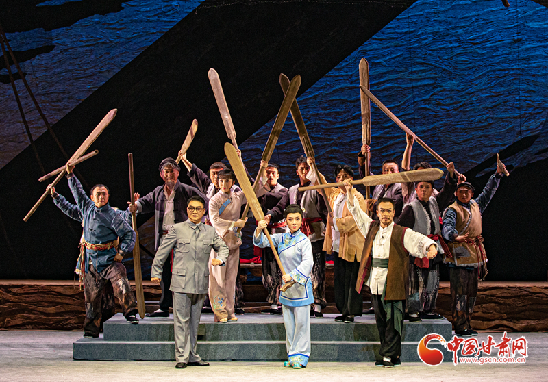 隴劇《大河?xùn)|流》于19日晚在甘肅黃河劇院成功首演。該劇以20世紀(jì)30年代末抗戰(zhàn)為背景,運(yùn)用具有地方特色的隴劇形式,生動(dòng)地描繪了大西北黃河邊的一群筏客子在國(guó)家危難之際,如何放下個(gè)人恩怨,團(tuán)結(jié)起來(lái)支援抗戰(zhàn),組成水上大型運(yùn)輸隊(duì),將大量物資安全送達(dá)抗戰(zhàn)前線,創(chuàng)造了“羊皮筏子賽軍艦”的傳奇故事。(甘肅省隴劇院供圖)