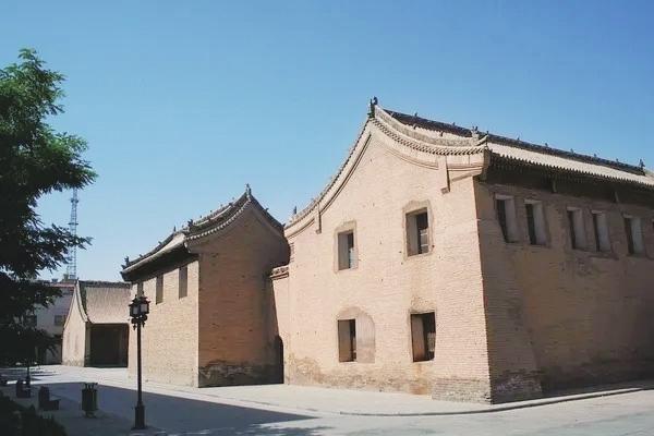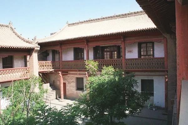 這是一座由府門、大堂、二堂、三堂、書齋、廂房和后宅一套龐大的雙層樓閣式四合院(包括主樓、配樓、藏書樓等),以及亭臺、泉池、園林組成。四合院樓閣歇山屋頂,青磚砌墻,雙獅守門,中間是正堂,兩邊是七十二座虎頭街門,飛檐雕柱,氣勢磅礴,煞是威嚴。府門內有磚雕磨塑的麒麟照壁。整個府邸設計獨特,氣勢非凡,占據(jù)了甘州城里的一條大街。