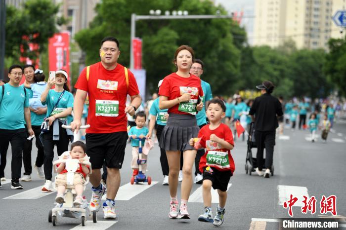當日7時30分,蘭馬鳴槍開賽,賽道上,不少跑者紛紛玩起Cosplay,“濟公”“奧特曼”“部落酋長”“飛天仙子”等成為攝影師們的抓拍焦點。家庭跑方陣內(nèi),一些家長推著嬰兒車或帶著蹣跚學(xué)步的孩子奔跑著。“今天帶著寶寶來參賽,就是希望讓他能感受到運動的魅力,同時也期許未來孩子能跑好自己的人生‘馬拉松’。”跑者李思明說。