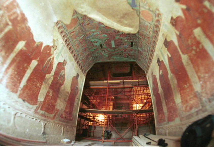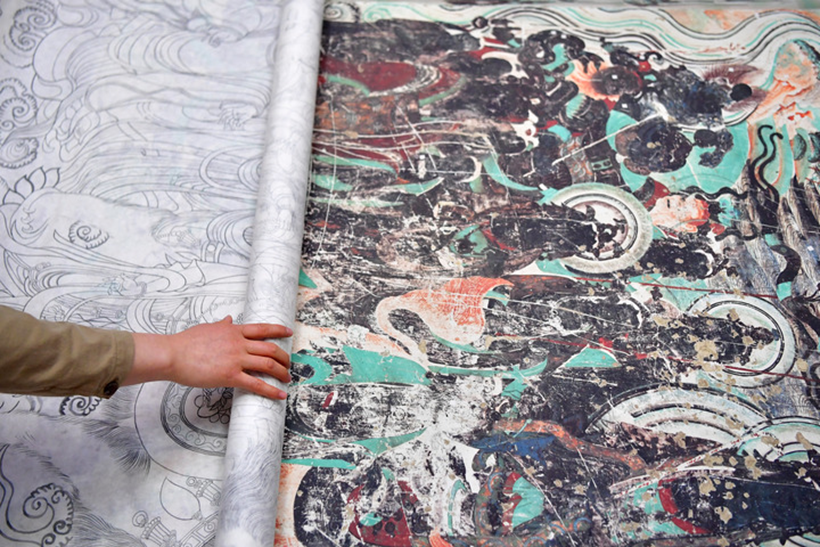 1989年年初,中國(guó)敦煌莫高窟465號(hào)窟內(nèi)的五處元代壁畫(huà)被盜。破案后,敦煌研究院立即組織有關(guān)專(zhuān)家將這些支離破碎的壁畫(huà)拼接粘合,以高超的技藝復(fù)原,然后按照?qǐng)D片檔案資料進(jìn)行描繪,使它們基本上恢復(fù)了被盜之前的本來(lái)面貌。