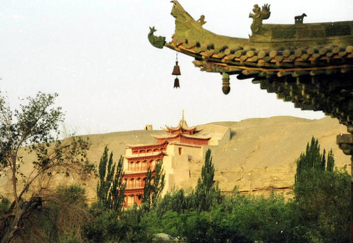 從20世紀(jì)70年代末開(kāi)始,大量先進(jìn)科技不斷被引入敦煌石窟保護(hù)。新技術(shù)、新材料、新手段的不斷運(yùn)用,豐富了敦煌遺產(chǎn)的保護(hù)技術(shù)和保護(hù)手段,有效改變了石窟內(nèi)部及其環(huán)境的保護(hù)狀況,使敦煌遺產(chǎn)的保護(hù)工作從原來(lái)的搶救性保護(hù),過(guò)渡到了科學(xué)保護(hù)階段。圖為透過(guò)敦煌莫高窟前的牌樓一角望去,敦煌莫高窟標(biāo)志性建筑九層樓依舊雄偉壯觀。新華社記者梁強(qiáng)攝(2004年10月25日發(fā))