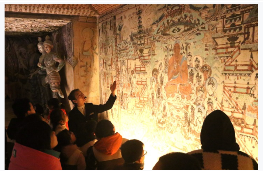 2024年,敦煌市依托當(dāng)?shù)刎S富的人文遺跡和自然景觀,大力發(fā)展文化研學(xué),建成莫高學(xué)堂、鳴沙書(shū)院等16個(gè)研學(xué)基地,推出壁畫(huà)臨摹、漢簡(jiǎn)學(xué)堂等獨(dú)具敦煌特色的研學(xué)產(chǎn)品,讓游客和學(xué)生在參觀的同時(shí)進(jìn)一步體驗(yàn)敦煌文化的魅力。 據(jù)了解,敦煌市已推出冬春旅游優(yōu)惠政策,對(duì)大中小學(xué)生免市屬景區(qū)門(mén)票,莫高窟對(duì)研學(xué)團(tuán)隊(duì)開(kāi)放洞窟由8個(gè)增至13個(gè),并配備資深講解員講解。