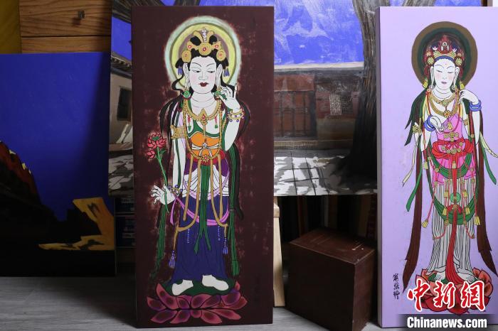 北京外國語大學(xué)藝術(shù)研究院院長寧強以敦煌莫高窟壁畫為靈感創(chuàng)作的繪畫作品。 徐雪瑩 攝